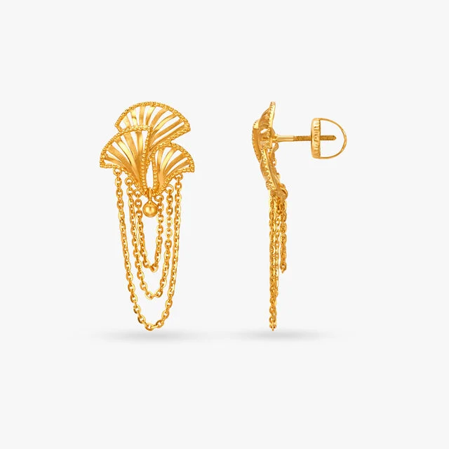 These cascading drop earrings are designed to create a flowing, elegant silhouette that naturally draws attention. Each tier falls smoothly to give a graceful movement with every step, making them perfect for occasions where you want your look to stand out without trying too hard. The balanced length, refined detailing, and lightweight construction ensure they stay comfortable while still delivering a high-impact finish. Whether paired with evening wear or styled with a minimalist outfit, these earrings add instant sophistication.